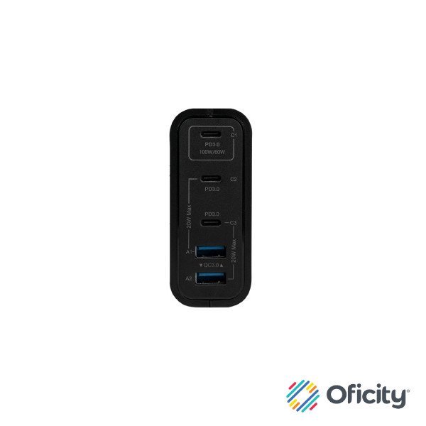 | Conectores: | CC USB-C1: PD3.0 5,0 V/3,0 A, 9,0 V/3,0 A, 12,0 V/3,0 A, 15,0 V/3,0 A, 20,0 V/5,0 A (100 W máx.) USB-C2/C3: PD3.0 5,0 V/3,0 A, 9,0 V/2,22 A, 12,0 V/1,67 A (20 W máx.) USB-A1/A2: QC3.0 5,0 V/3,0 A, 9,0 V/2,0 A, 12,0 V/1,5 A (18 W máx.) USB-C1+USB-C2/C3: PD |