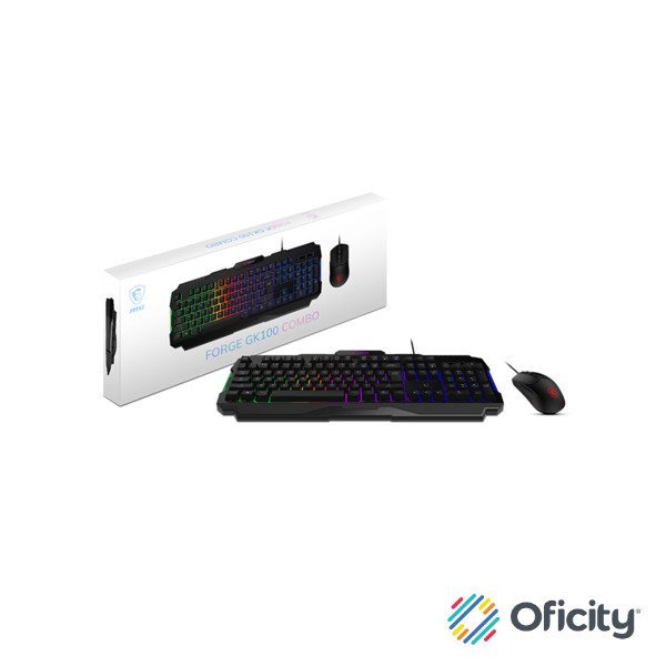 Kit Gamer Teclado y Mouse MSI FORGE GK100 Alámbrico USB Negro Español Membrana RGB