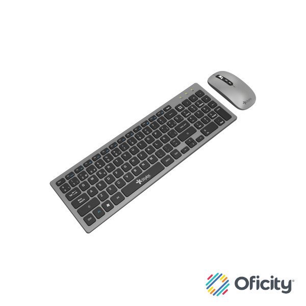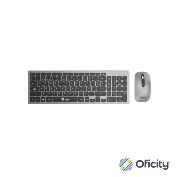 Kit Teclado y Mouse Inalámbrico Stylos Recargable 2 en 1 Gris Teclado 96% Membrana 96 Teclas Conexión USB