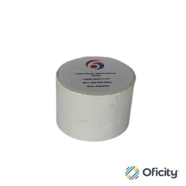 Papel Six Graphics Blanco Brillante Adhesivo Acrilico Respaldo 4×4″ Core 1 380 Etiquetas por Rollo