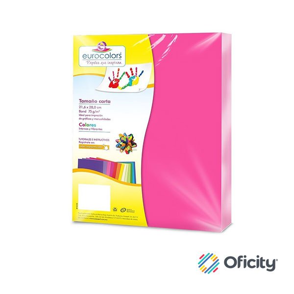 PAPEL EUROCOLORS CARTA ROSA PAQ. CON 100 HJS.