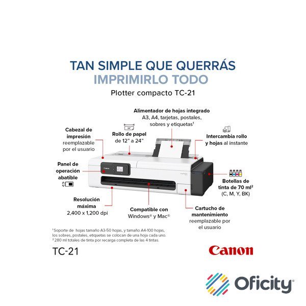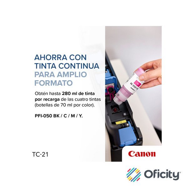 Plotter Canon imagePROGRAF TC-21 de 24″ con Sistema Inyección de Tinta Continua