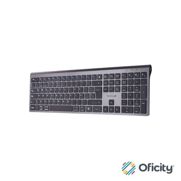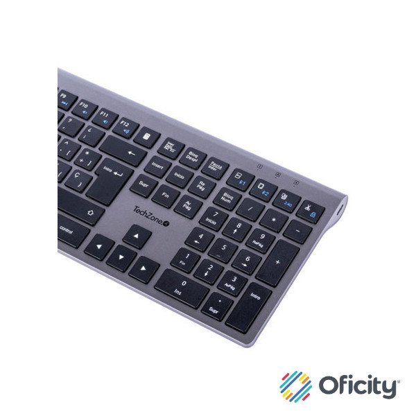 Teclado TechZone Hefestos Recargable Multipunto Bluetooth 10m de Alcance Color Plata
